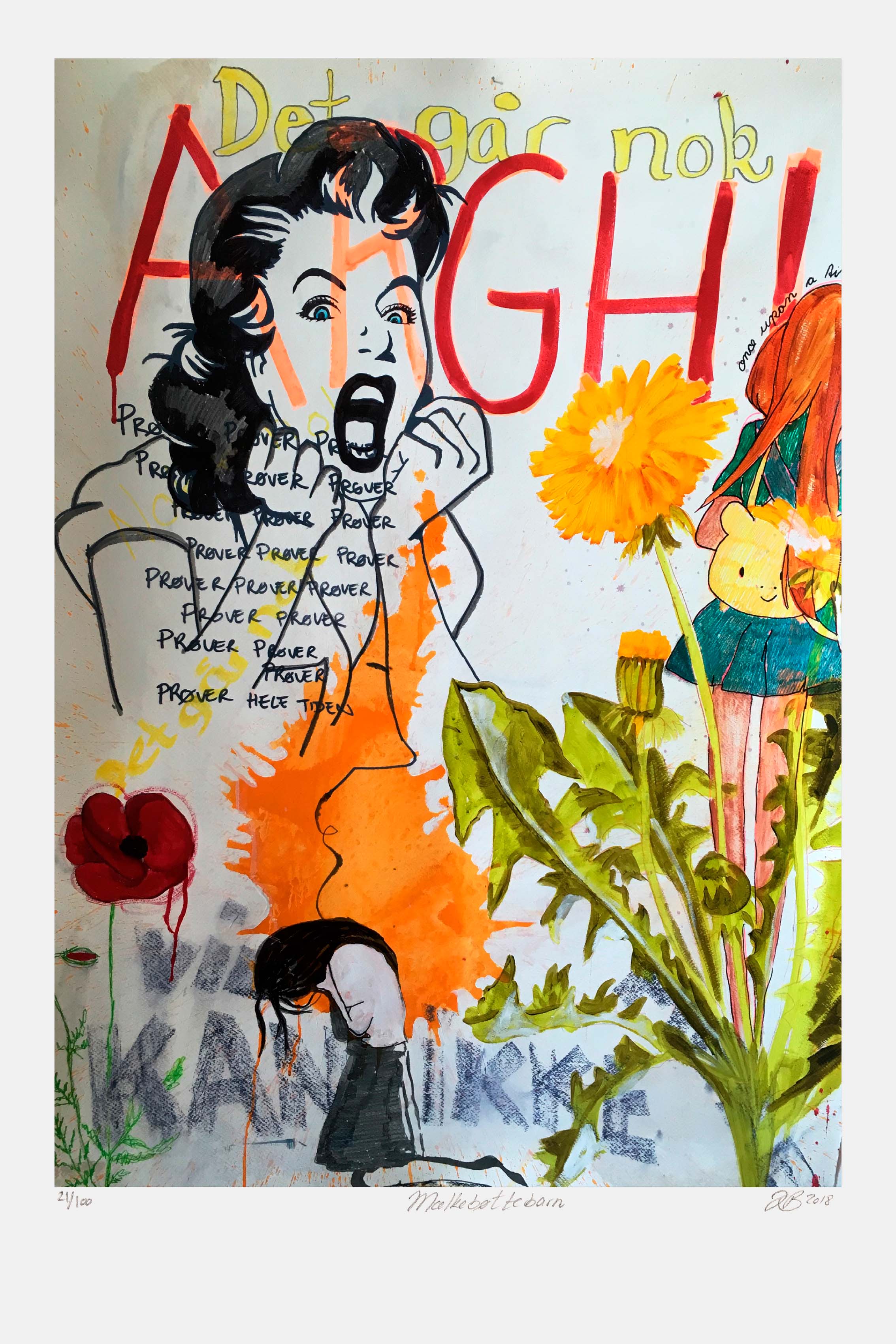 The Giclée print is titled 'Mælkebøttebarn' in Danish.