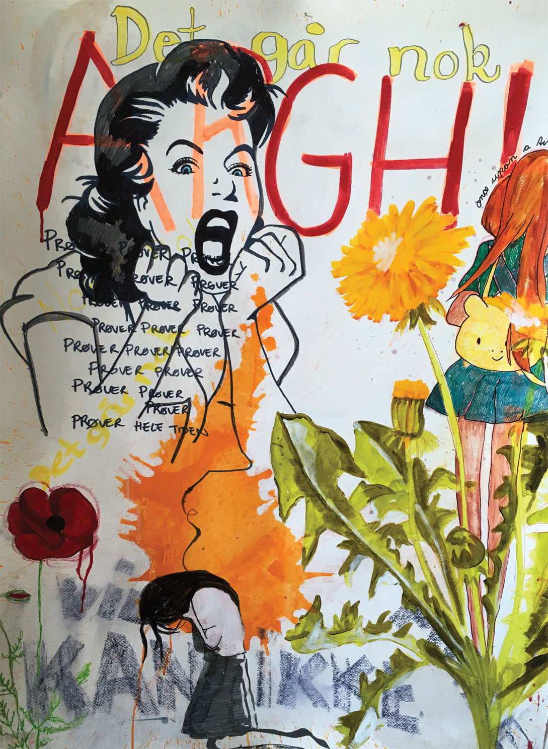 The beautiful, colourful poppy. What is it really we want to achieve? But how is it with poppies in reality - if you pick them for a bouquet they do not last long. The daffodil is a symbol of breaking with the family educational tradition, so maybe the sad and broken character is finding a way through the anger to a different place?