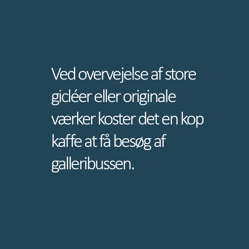 Galleribussen kører i hele Danmark og det koster ikke noget at få besøg. Det er bedst at se tingene i eget hjem, før du træffer beslutning om køb.