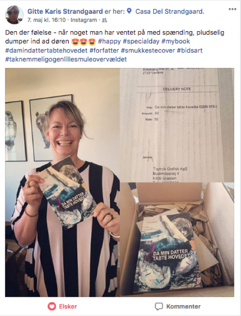 Bestillingsværk til bogen 'Da min datter tabte hovedet' af Gitte Karis Strandgaard.