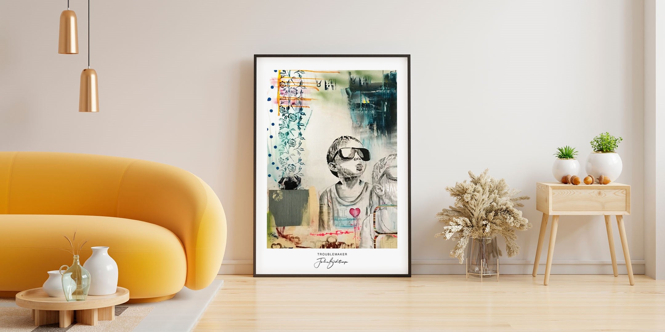Det var så dejligt at have besøg af jer og se billedet 'hverdag' rigtigt i min stue. historien til Tove ditlevsens digt er så fin og farverne lyser op. Det gør en kæmpe forskel for vores stue!